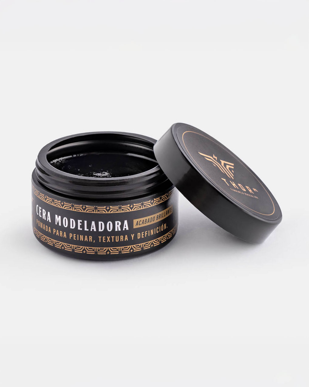 Es una pomada a base de agua y glicerina, ideal para el cabello masculino. Se denomina Cera Modeladora Brillante porque ofrece una fijación media con un acabado natural y brillo moderado.